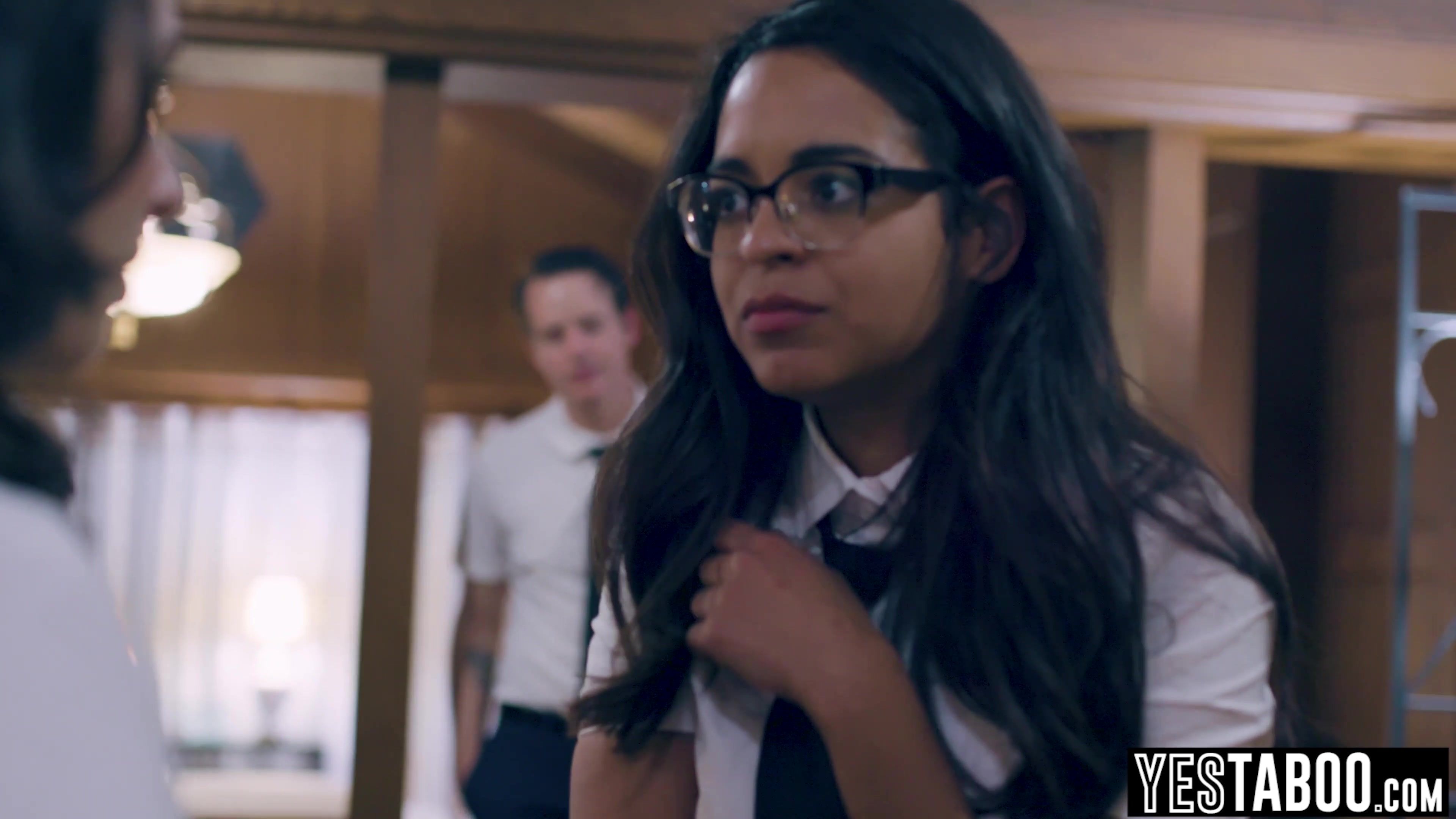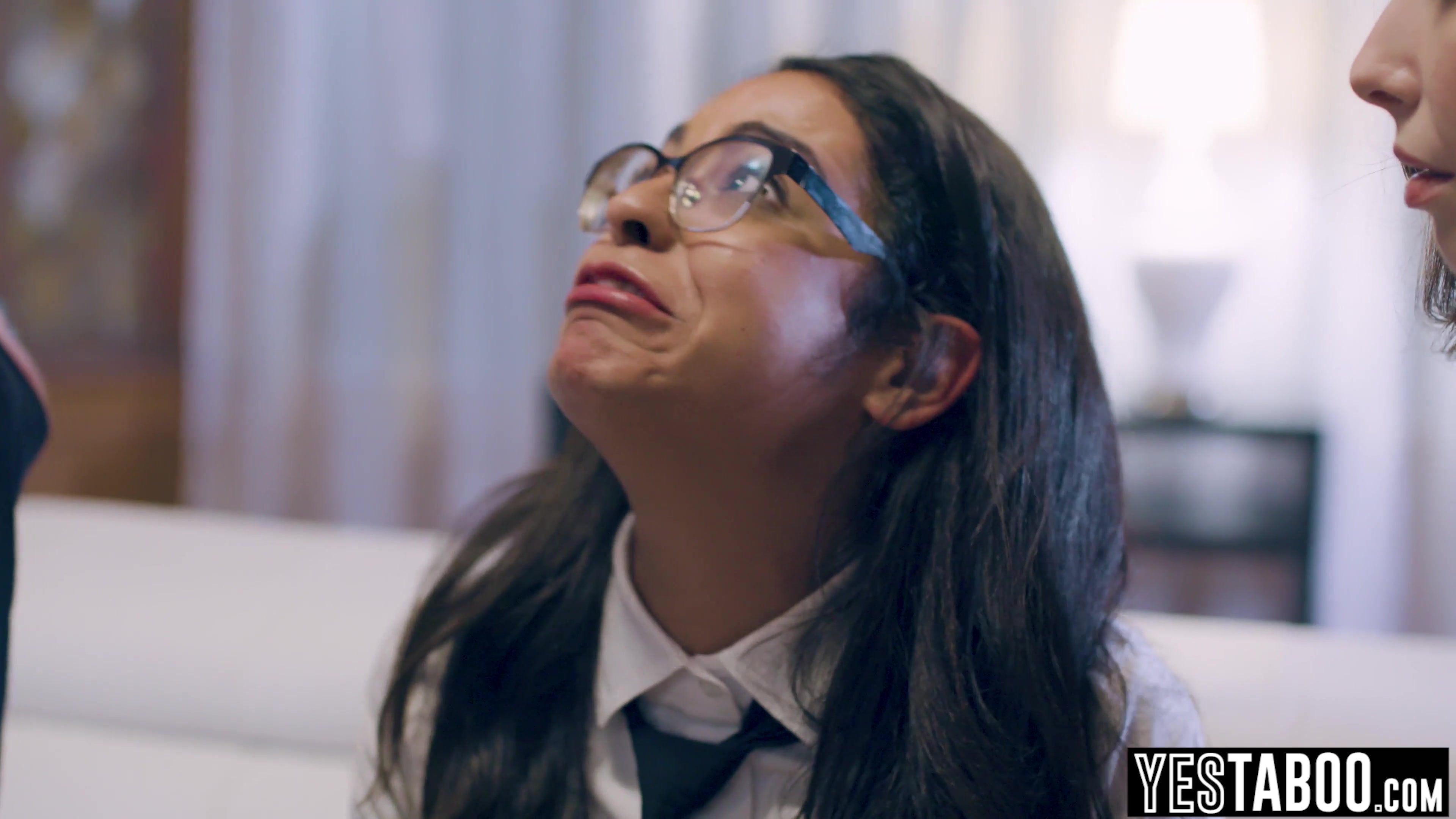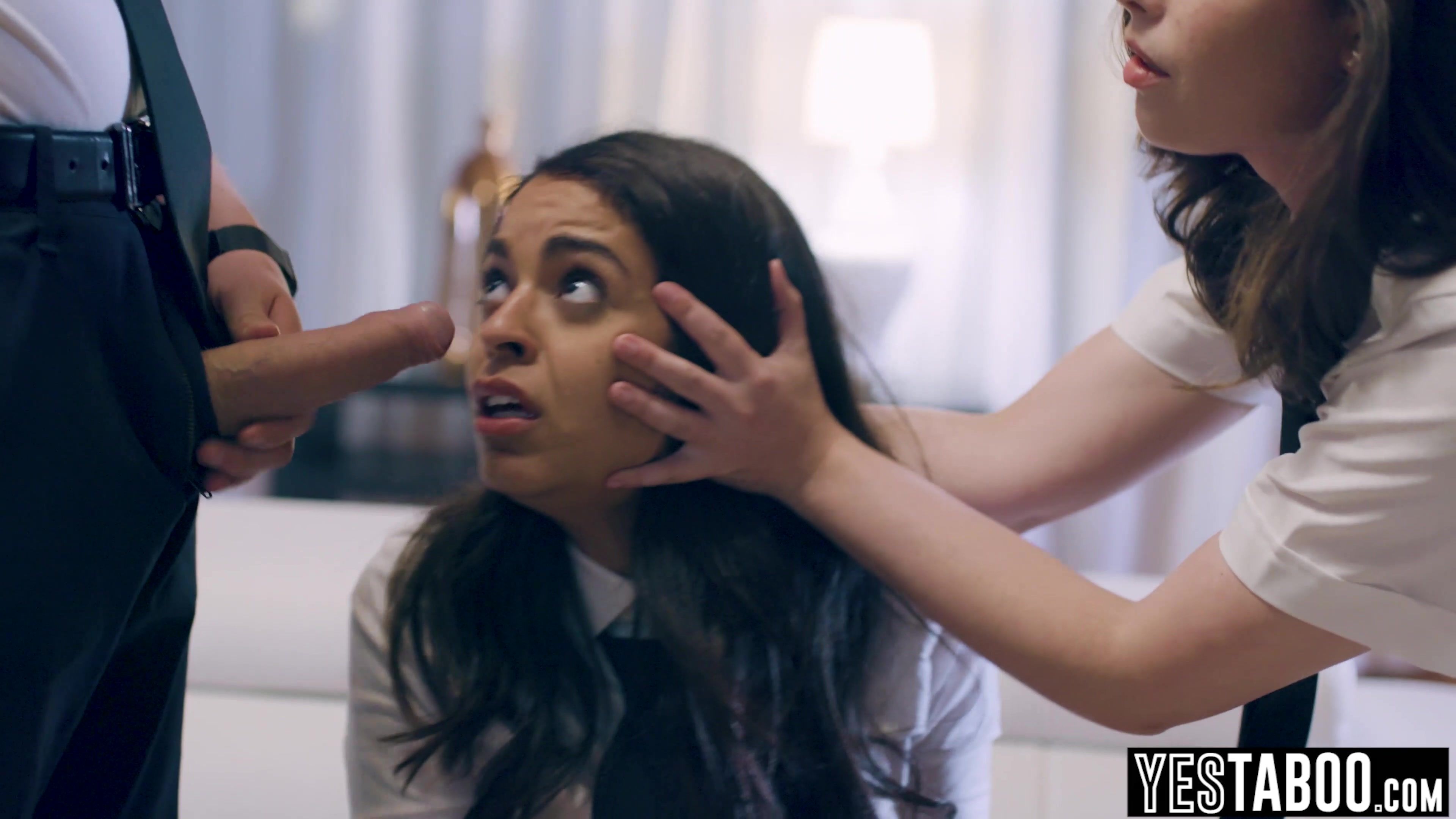 Busty petite innocent Latina teen Vienna Black gets manipulated by her kinky classmate Casey Clavert and her big dick stepbro into having a threesome with them and blows his big dick before both beuaties get their pussies pounded in a hardcore threesome!